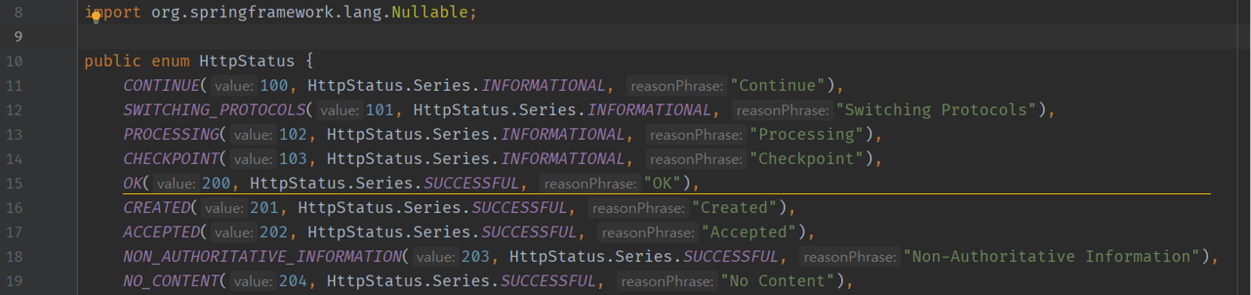 참고로 저기서 HttpStatus.OK는 이런 것이다.
