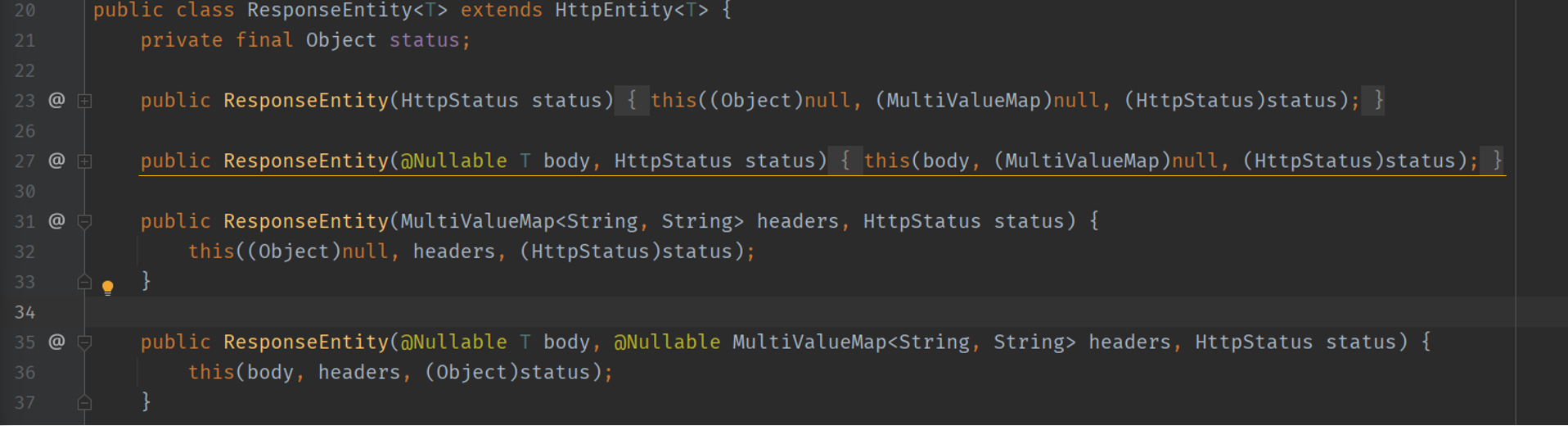 코드의 ResponseEntity의 위에 커서를 올리고 Ctrl + 클릭 해 보면 이와 관련한 내용이 쭈루룩 나온다.