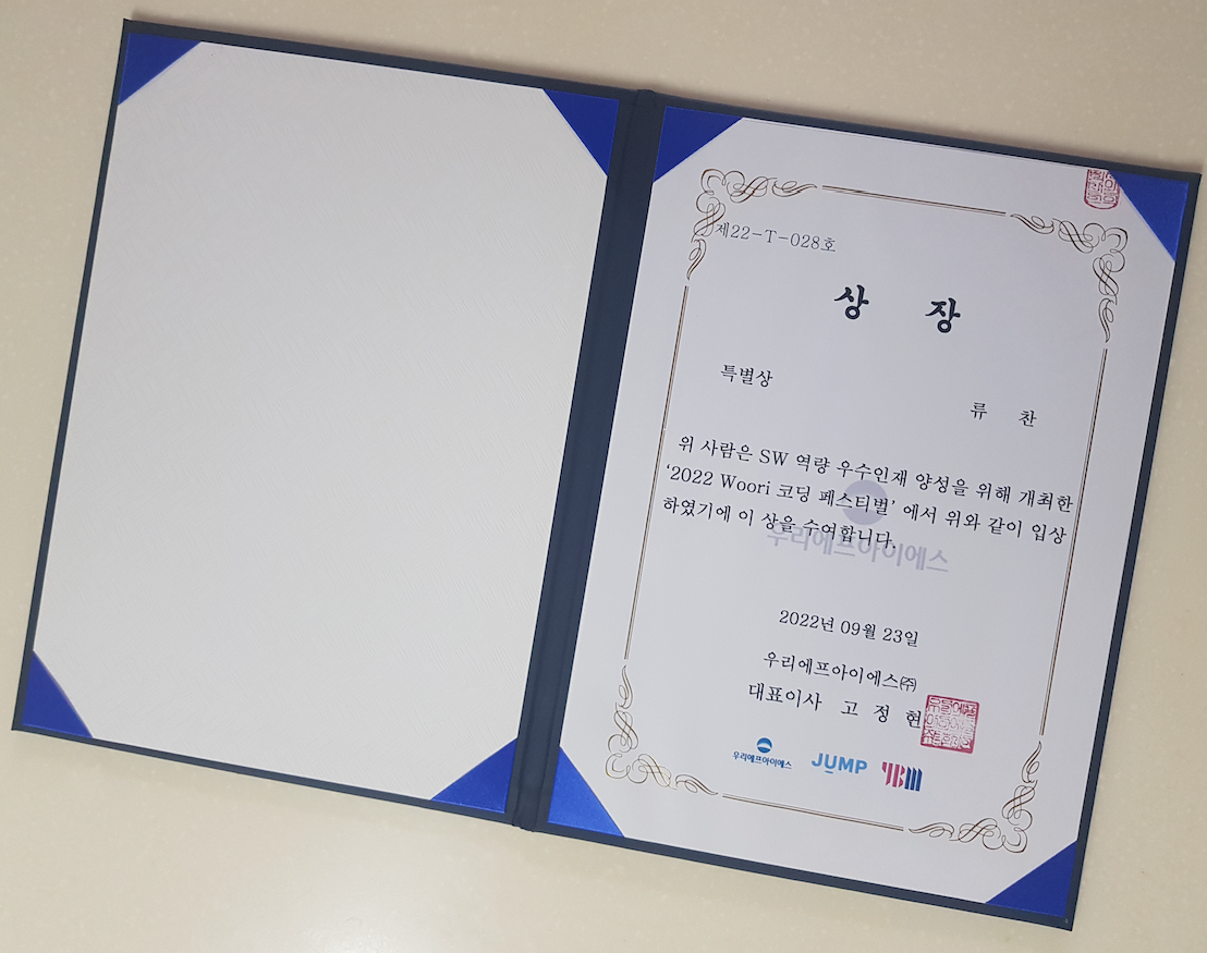 장려상이 15명 까지이고 특별상은 45명이 받았는데ㅋㅋㅋ.. 너무 오래걸려서 기대도 안했는데 그래도 특별상은 받았다.