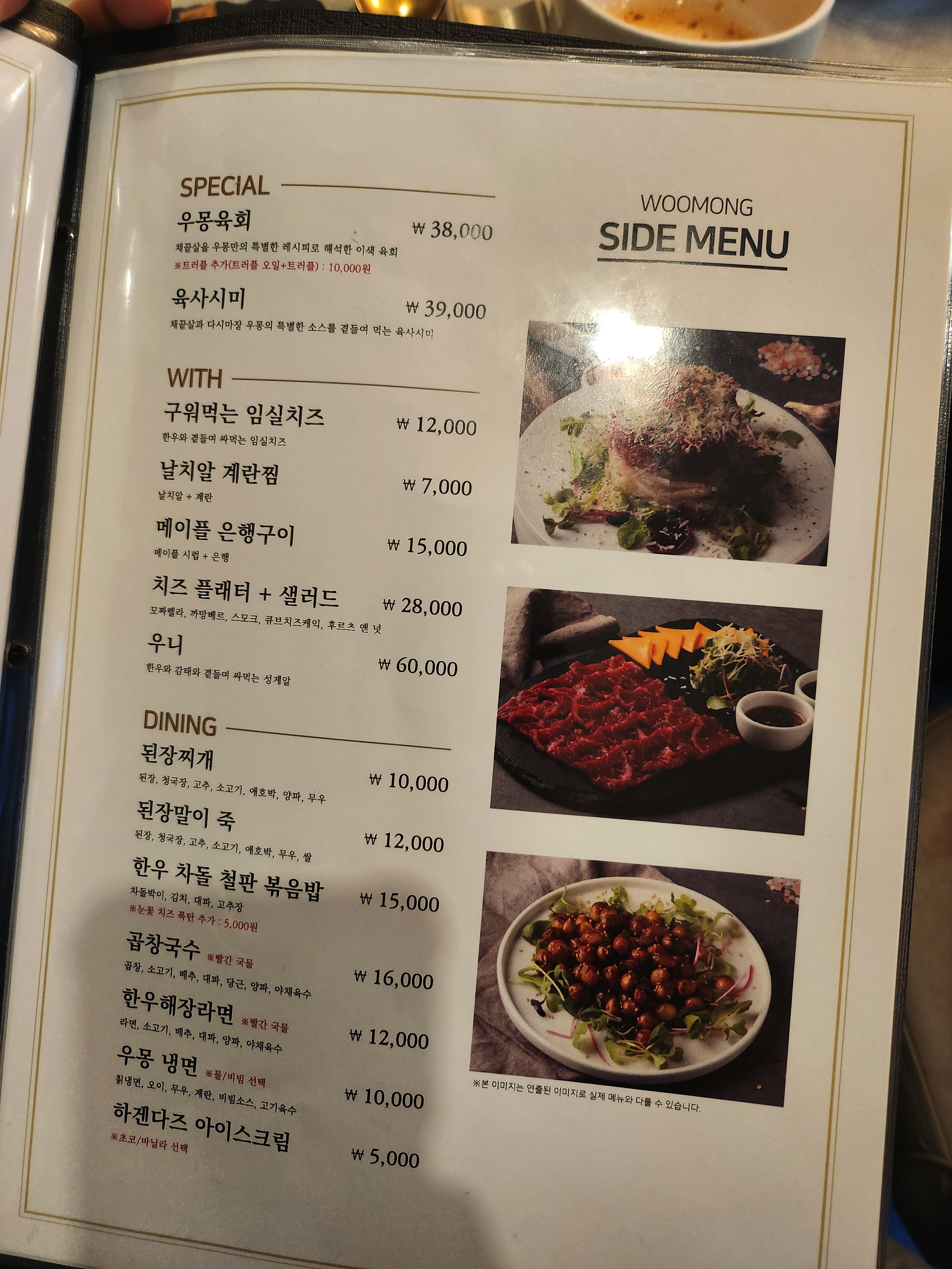 우리는 우몽스페셜, 새우알등심을 시켰고, 나는 한우해장라면을 더 먹었다.