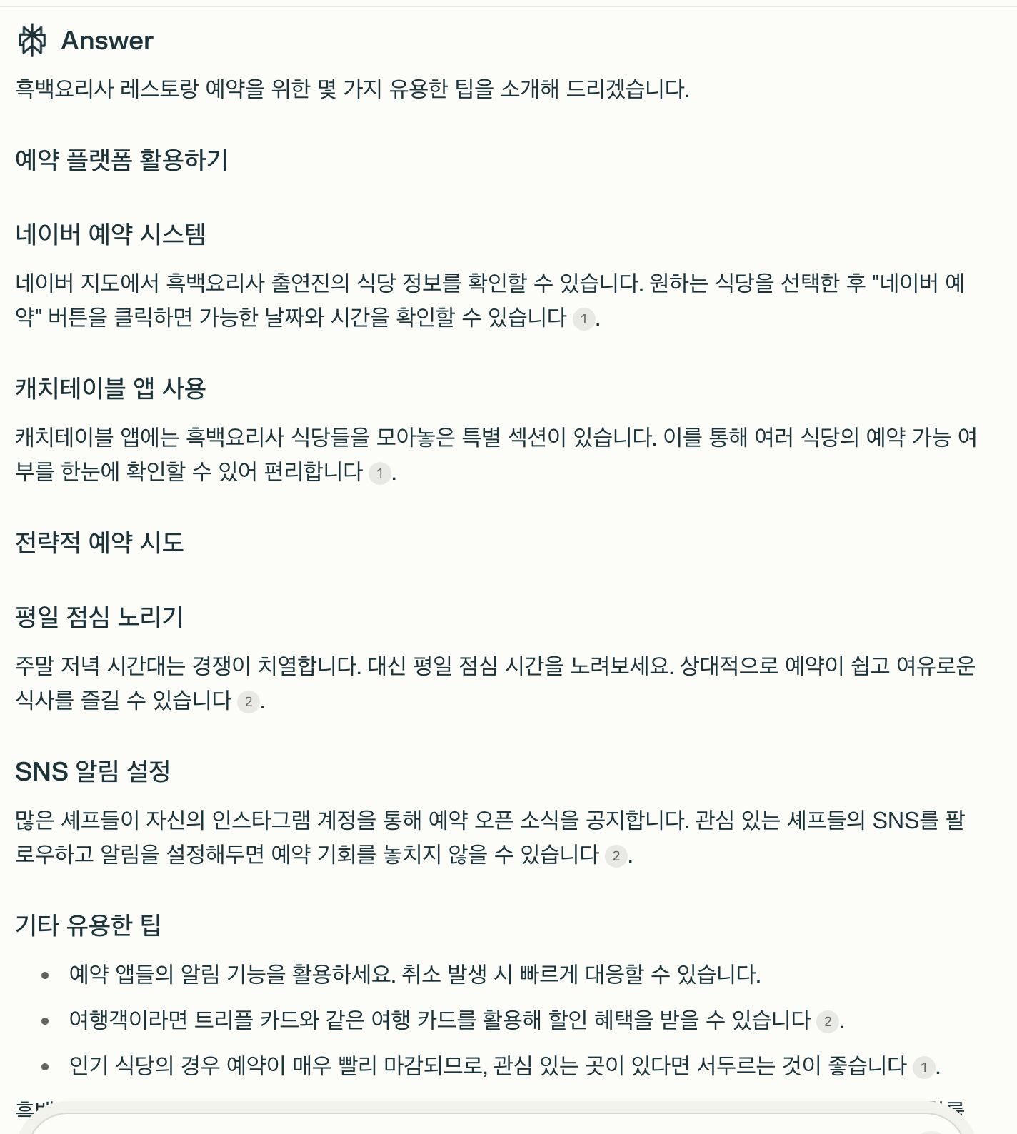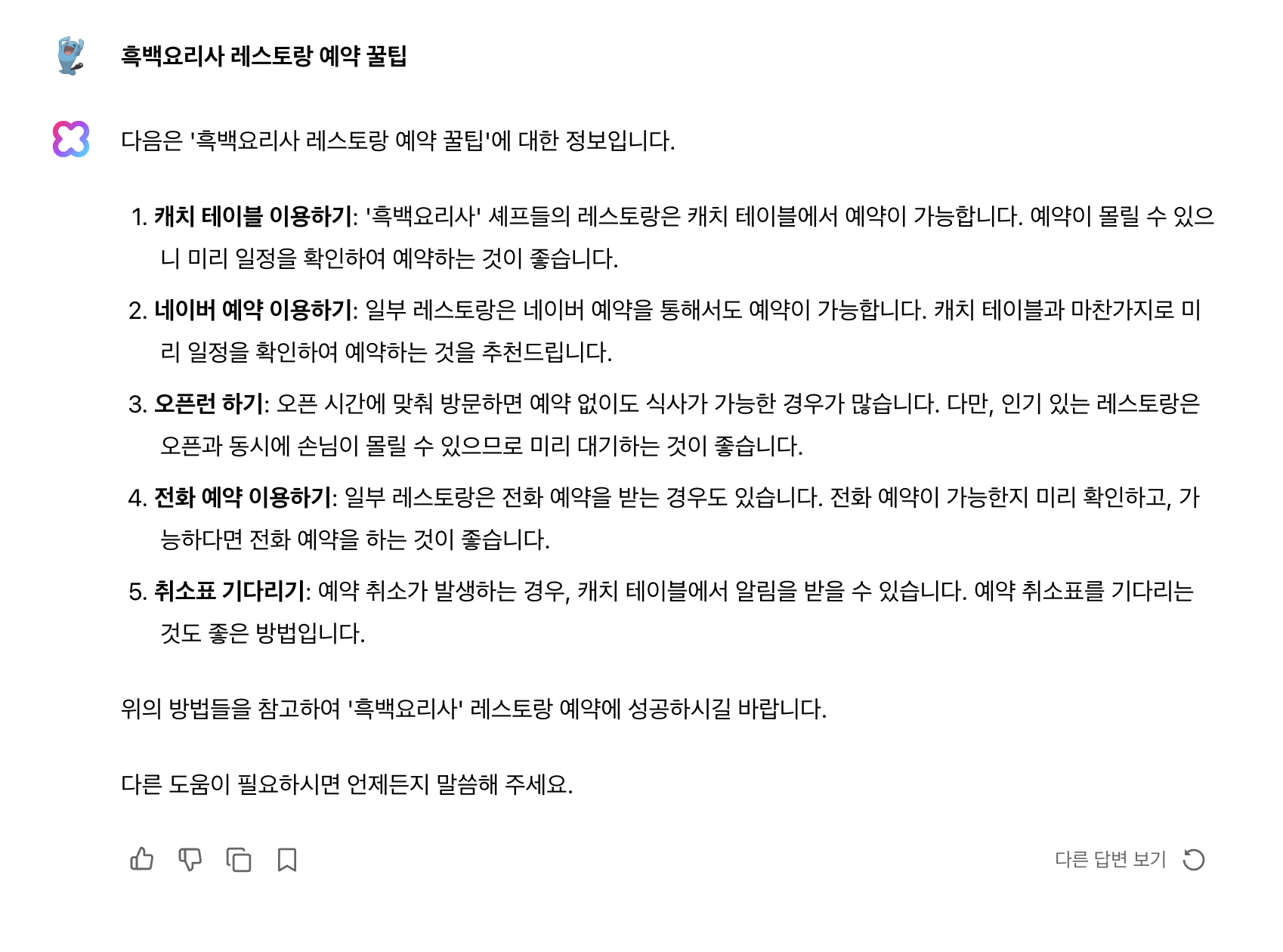 괜찮은 팁을 주는데 캐치테이블이 아니라 왠지 쿠차를 말하는 chatGPT