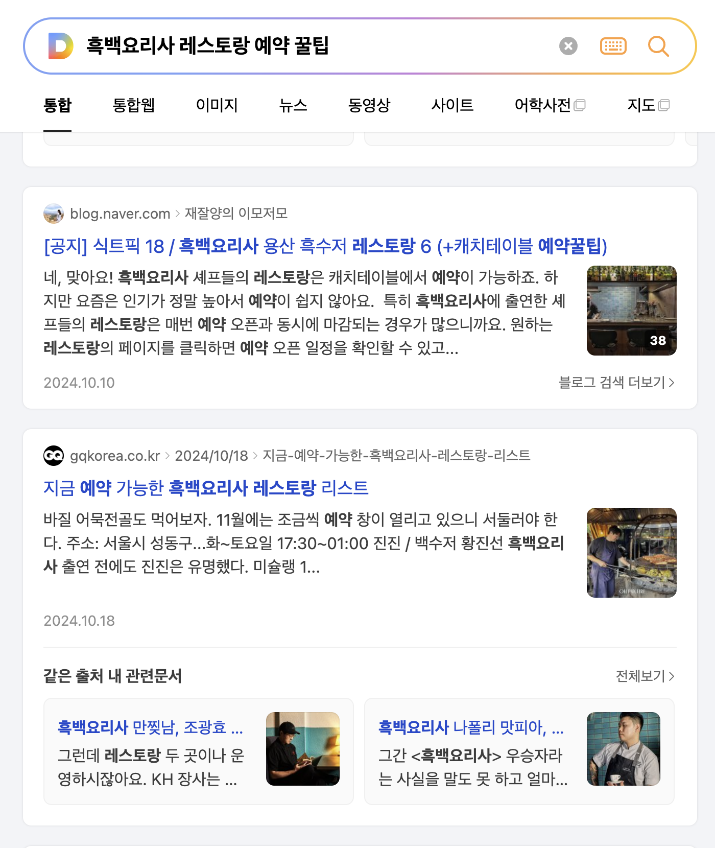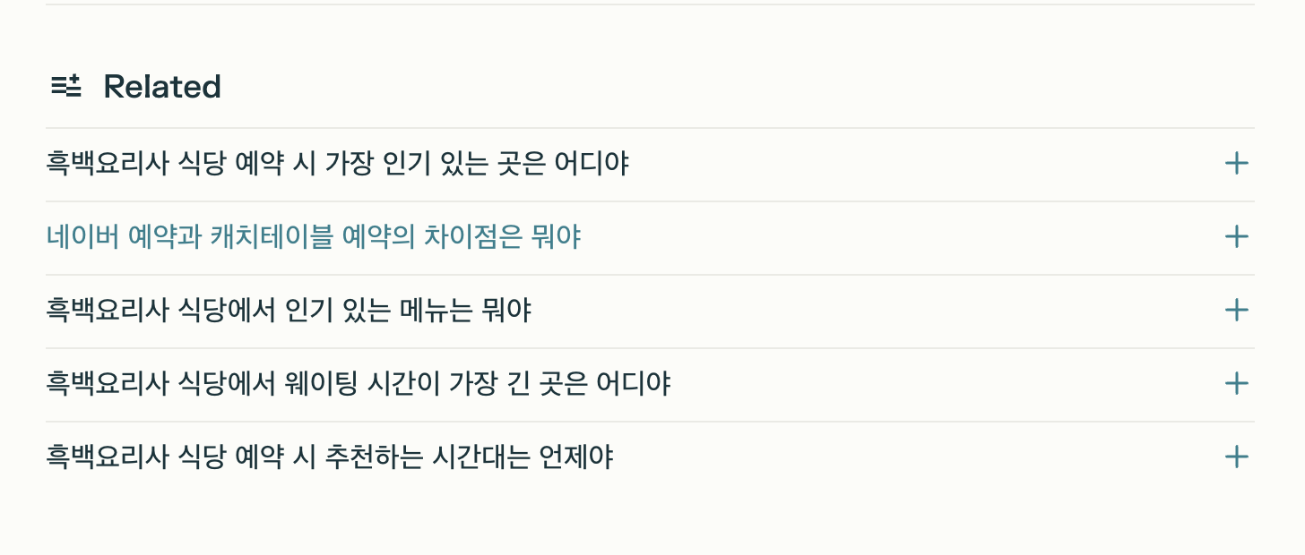 요렇게 연관 검색어도 줘서, 마치 플랫폼에서 검색하는 것 처럼 다음 검색도 이어갈 수 있다.