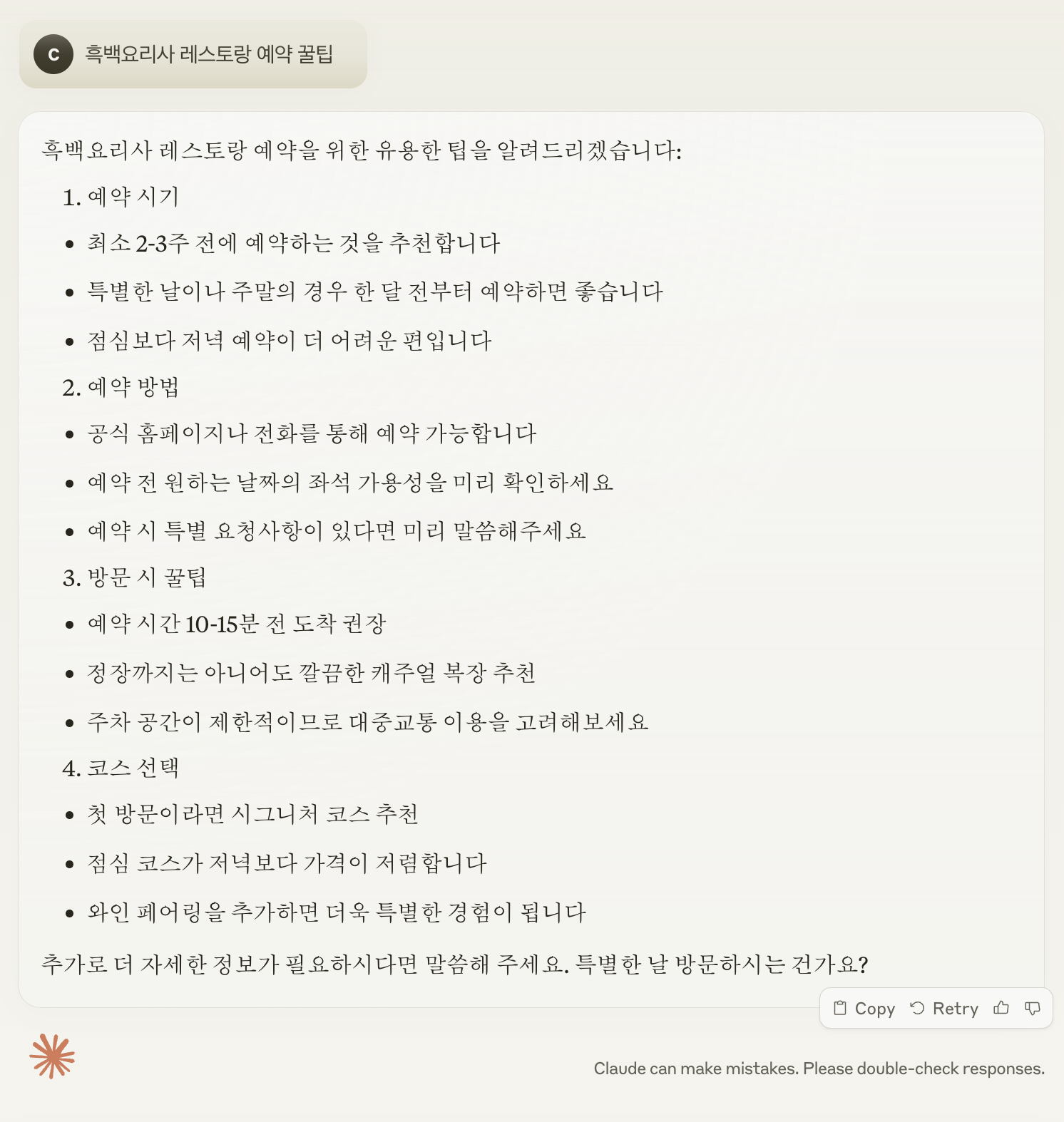 흑백요리사 레스토랑 예약 꿀팁